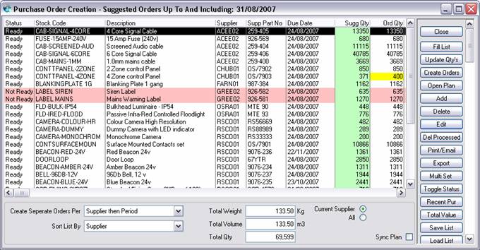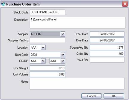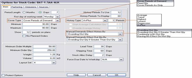 maximum number of cover days of stock. With the optional Purchase Order Creation